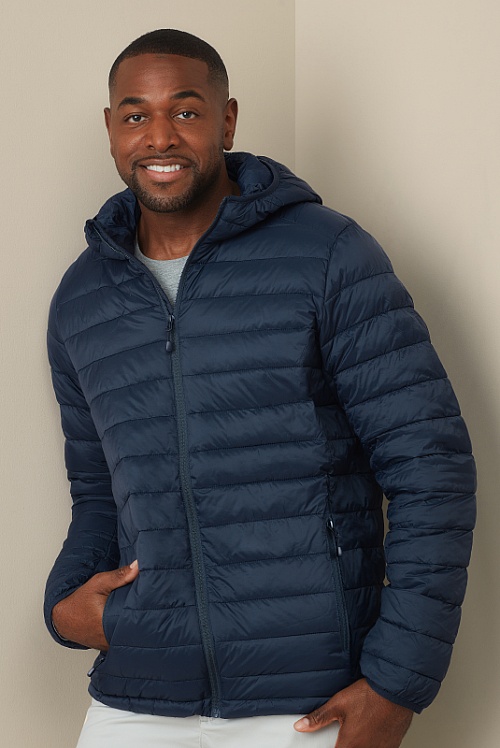 This padded jacket for men offers great heat insulation despite its light weight. With handy "stow-away" function: The jacket folds down into its own inside pocket, saving space on outdoor adventures.