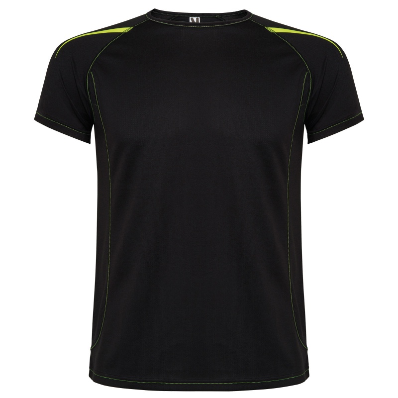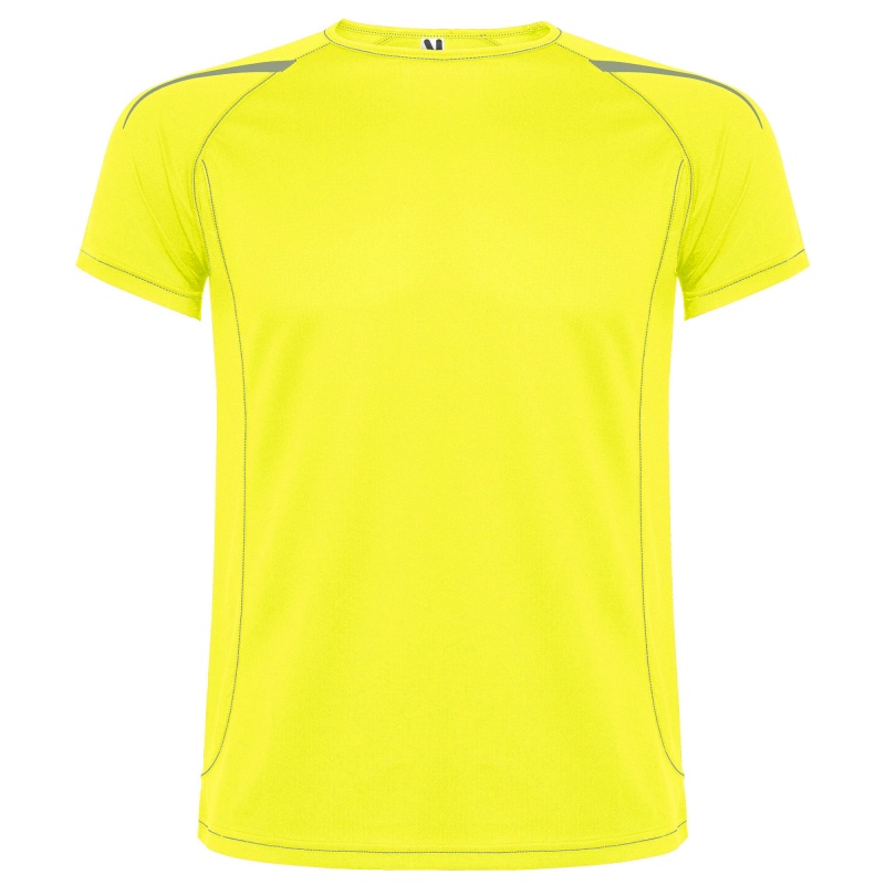DESCRIPTION Short-sleeve technical raglan t-shirt in single jersey. 1.- Contrasting seams in cuffs, waist, collar and sides. 2.- Neck trimmed in the same fabric. 3.- Breathable easy wash and dry fabric. 4.- High-visibility details, except in black and royal colour, in which this detail is in yellow, not reflective.