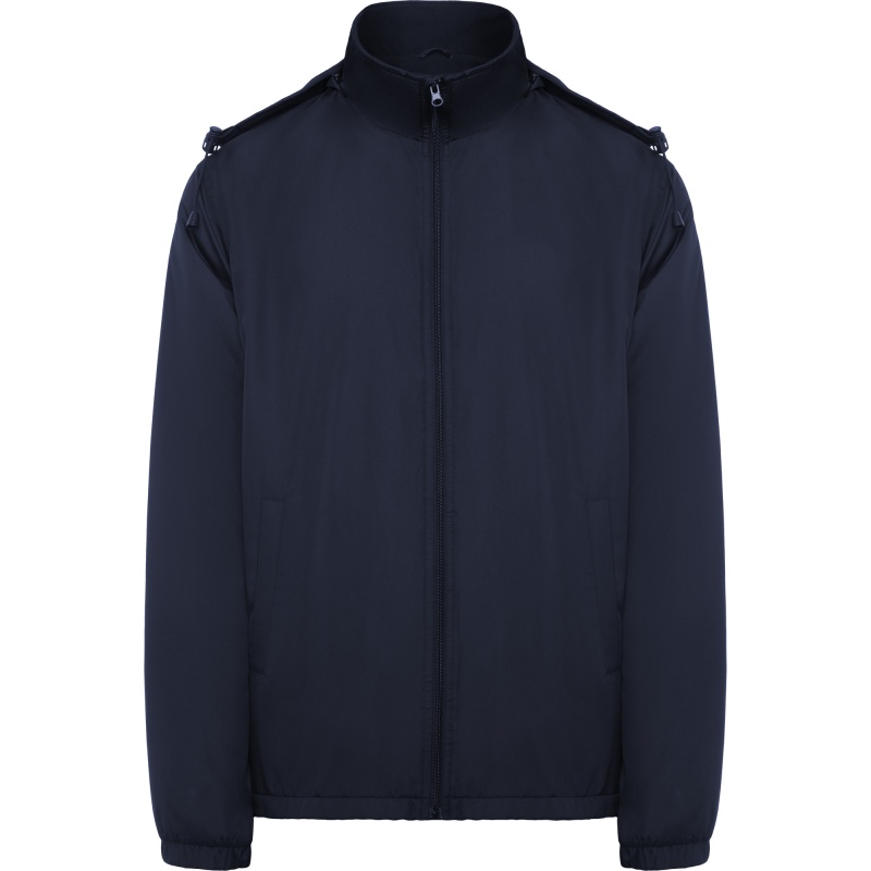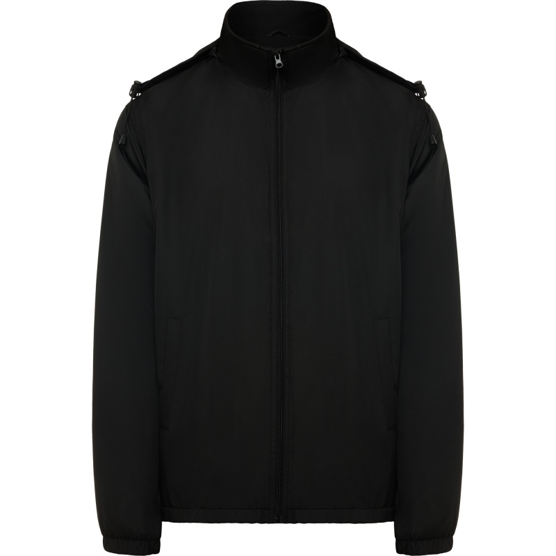 Light waterproof jacket. · High collar and foldable hood with adjusters. · Microfleece lining. · Front zip and chin protector. · Elastic cuffs. · Two side pockets with zip. · Interior left chest pocket. COMPOSITION Shell: 100% polyester, 85 gsm. Padding: 100% polyester, 65 gsm. Lining: 100% polyester, microfleece, 180 gsm.