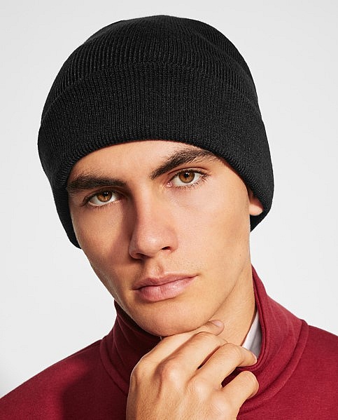Knitted beanie with double turn-up, special for embroidery. 100% acrylic. Removable label. COMPOSITION 100% acrylic. Weight: 40 gr.