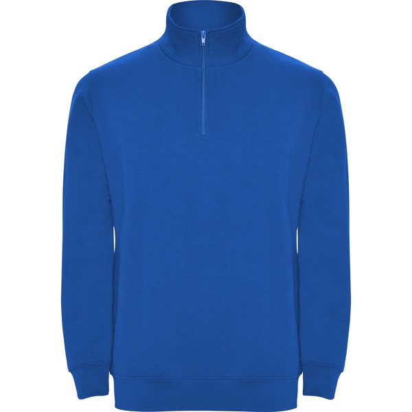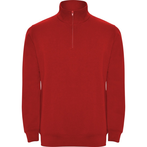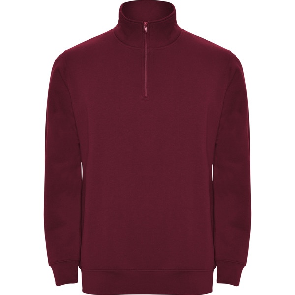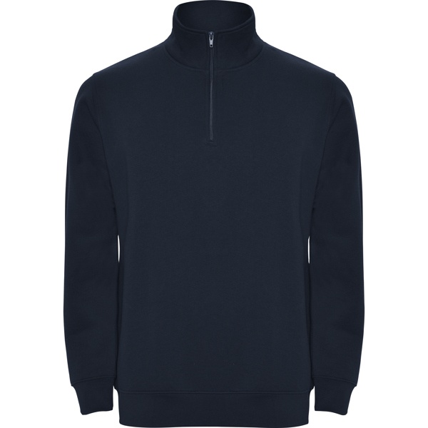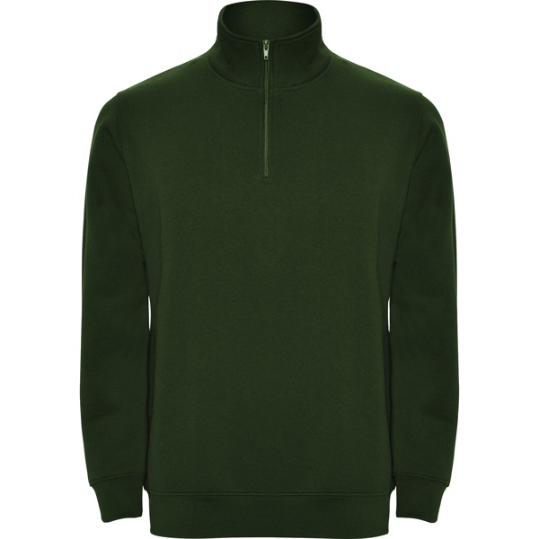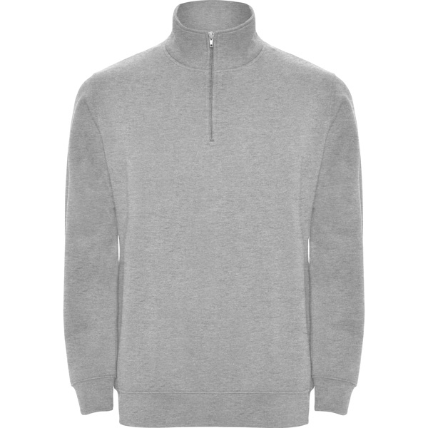 Sweatshirt with matching half zip and polo neck. Matching inner collar. Reinforced covered seams on inner collar. 1x1 ribbed cuffs and waist. COMPOSITION 50% cotton / 50% polyester, brushed fleece, 280 gsm. Heather grey 58: 55% cotton / 40% polyester / 5% viscose.