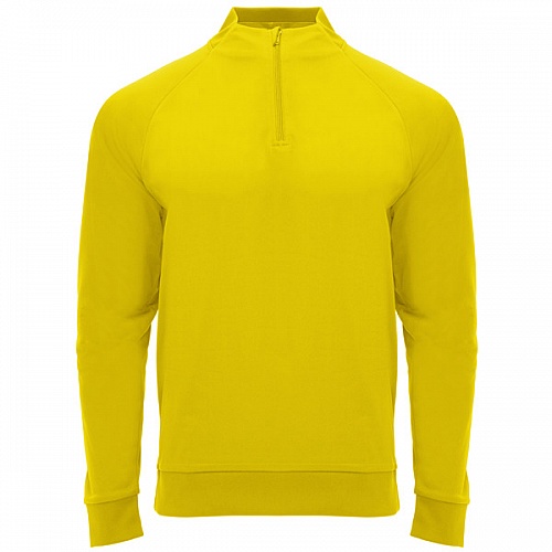 Raglan sleeve sweatshirt. 1. Inner fleece. 2. Collar with half zipper and matching reinforced covered seams. 3. 1x1 rib in back collar, cuffs and hem. COMPOSITION 100% polyester, 200 gsm.