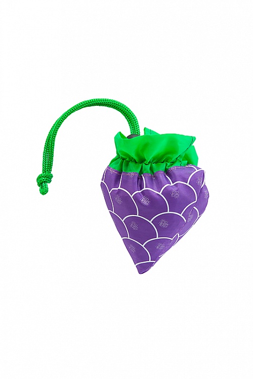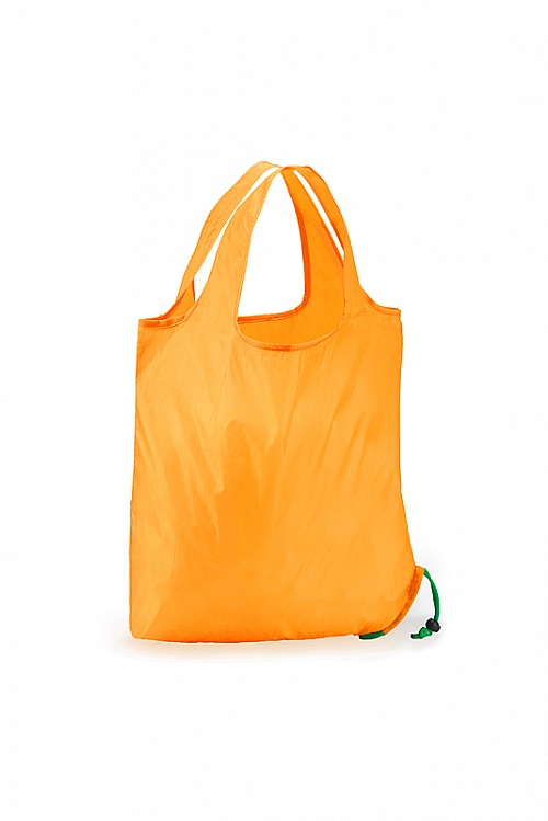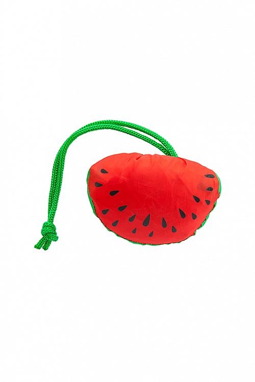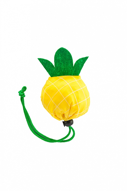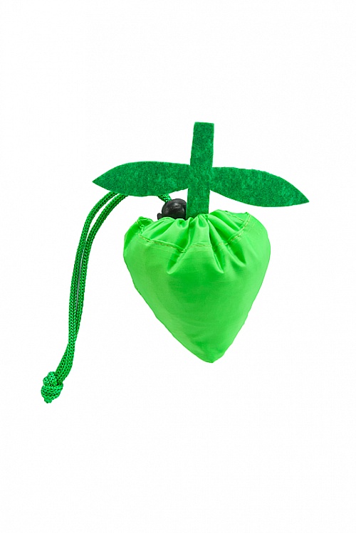 Foldable shopping bag in soft 190T polyester. Assorted fruit designs with drawstring fastening.