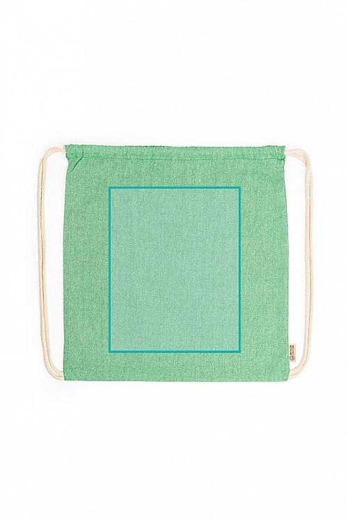 Drawstring bag made of 120 gsm recycled cotton in heather finish and cords in natural colour. Available in different colours.