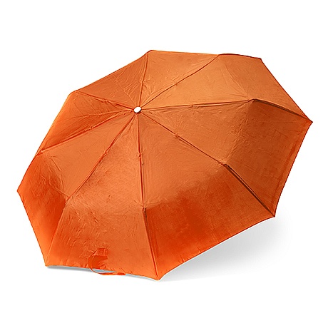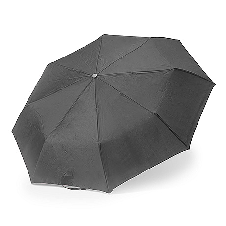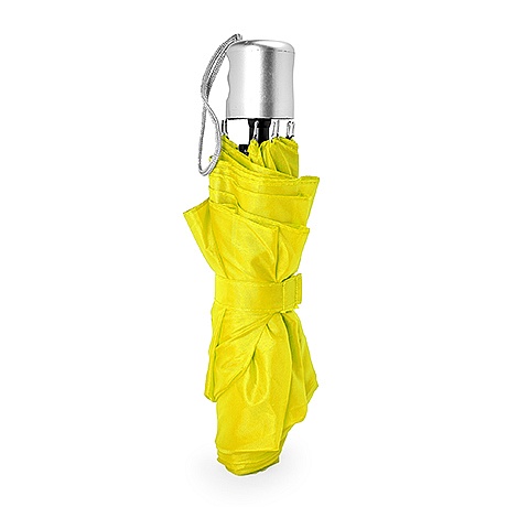 Foldable umbrella with matching pouch. Silver handle, ribs and end tips. Velcro fastening and manual opening. 95 cm diameter.