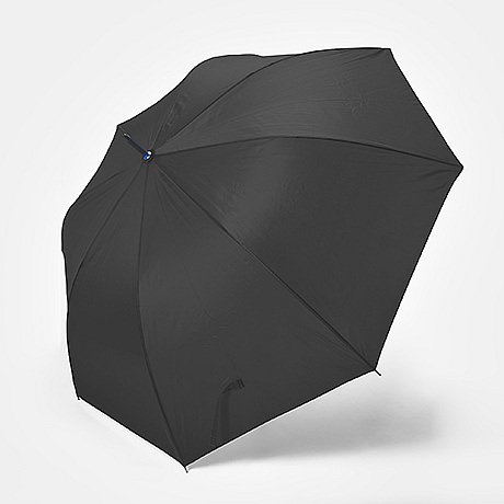 XL umbrella with handle, shaft and tips in black. Long fiberglass ribs. Auto-opening button. EVA handle. Colour matching velcro fastening. 130 cm diameter.