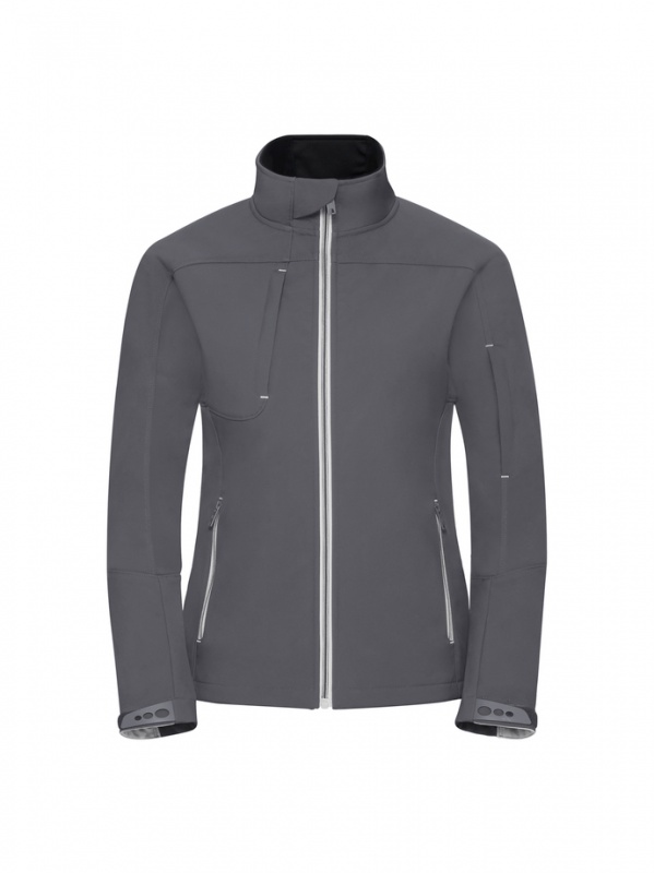 The Bionic Softshell Jacket is the latest member of the Russell Europe softshell family. This excellent fitting softshell jacket with its timeless design is highly water and wind resistant. The Bionic-Finish® Eco enables the jacket to be water repellent in an ecological way. Perfect for evoking a smart corporate image for those who are searching for a piece of modern outerwear to top off their corporate look.