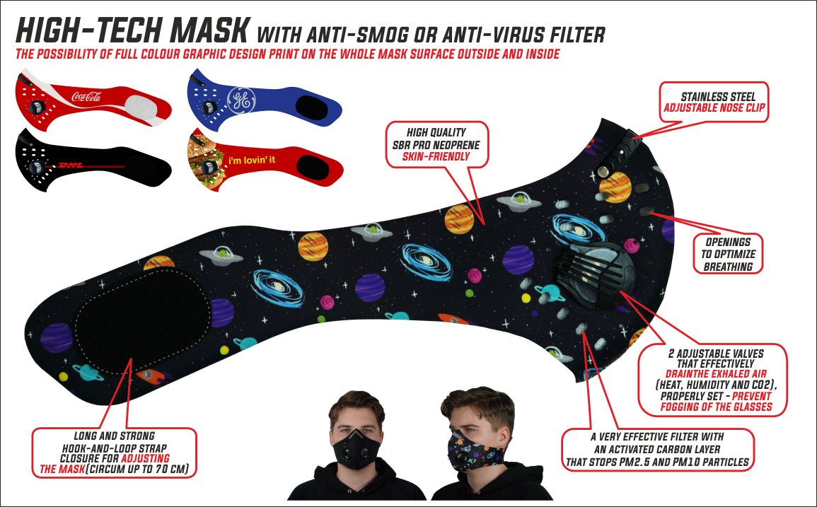 NEOPRENE MASKS WITH ANTI-VIRUS OR ANTI-SMOG FILTER
