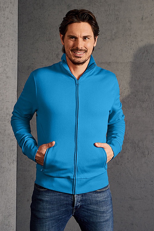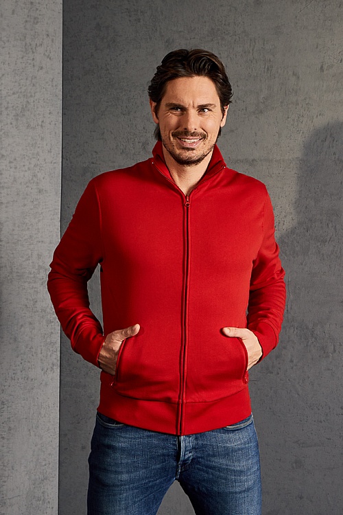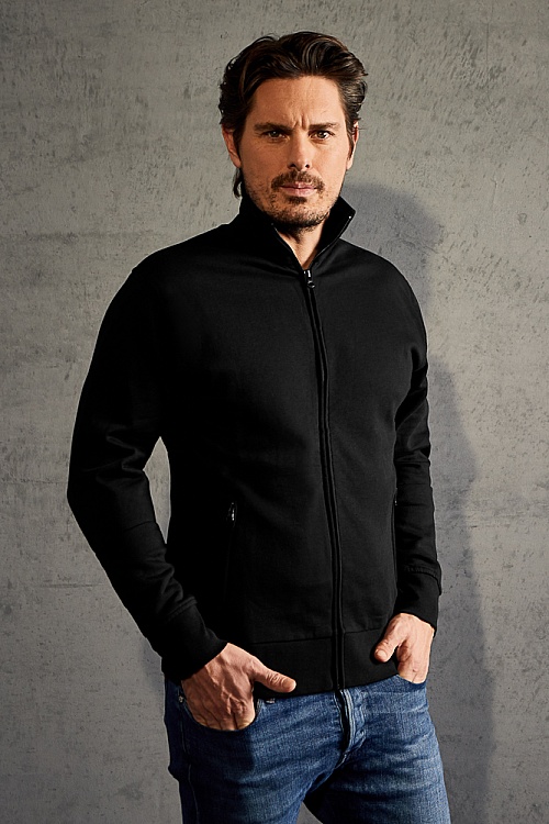 Kołnierz stójka, kryty zamek na całej długości, dwie boczne kieszenie zapinane na zamek, elastanowe ściągacze rękawów i brzegu, molton brushed.