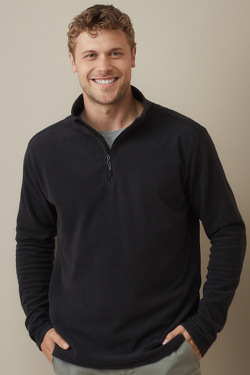 Lekkość i znakomita izolacja termiczna: ta polarowa bluza dla mężczyzn, ze stojącym kołnierzem i zamkiem błyskawicznym, wykonana z oddychającego mikropolaru, może być ciepłą i miękką warstwą środkową twojego stroju. Dolny brzeg jest regulowany.