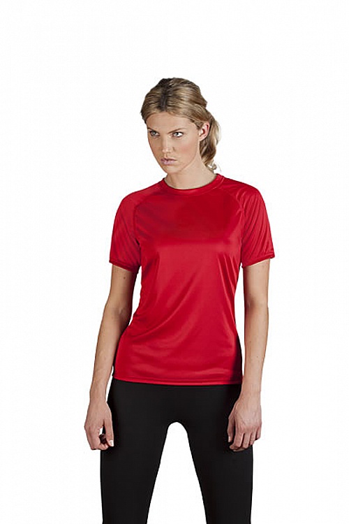 Raglanowe rękawy, interlock, wykończenie CoolDry (szybkoschnące).