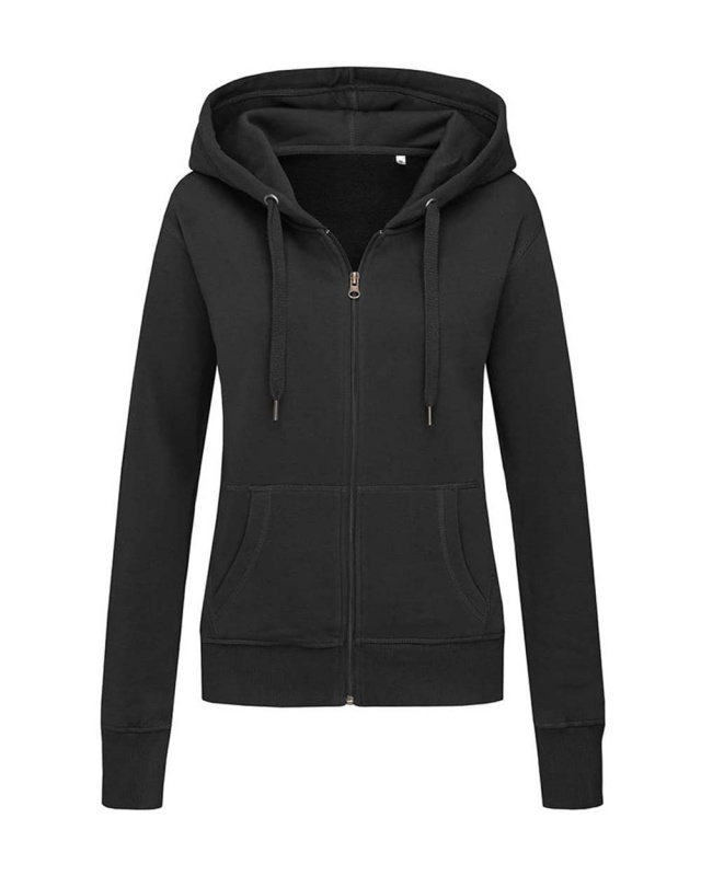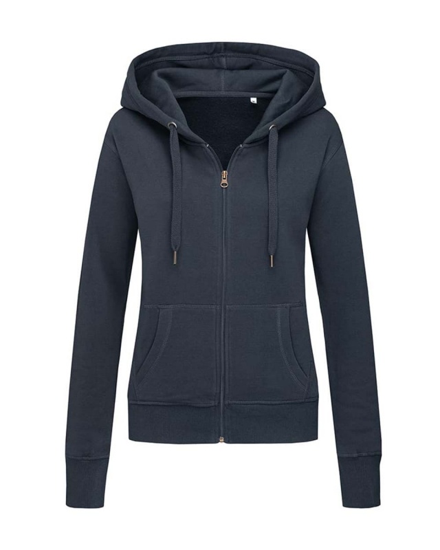 Modna rozpinana bluza z kapturem dla kobiet wykonana z ciepłej i miękkiej mieszanki bawełny i poliestru, o nowoczesnym i sportowym kroju, z kieszenią z przodu, szerokimi mankietami ze ściągaczem i szerokim troczkiem. Drapana warstwa wewnętrzna zapewnia poczucie komfortu i ciepła.