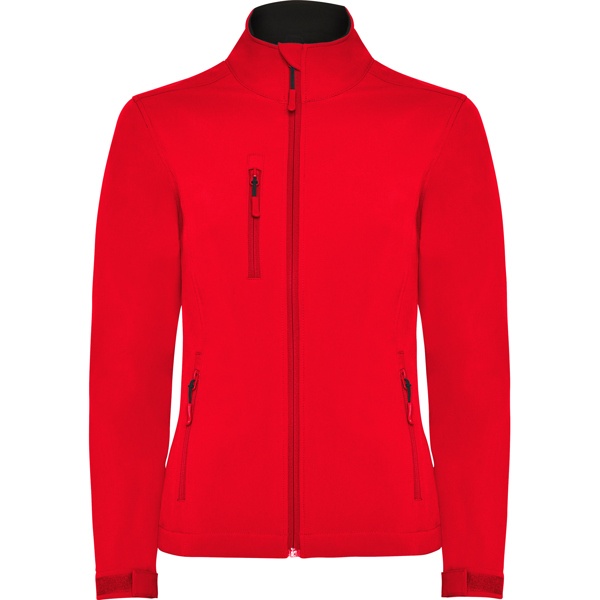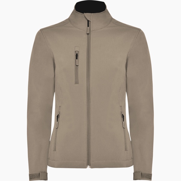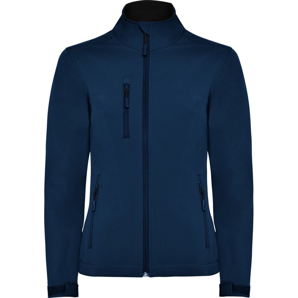 Dwuwarstwowa kurtka typu soft-shell. Zamek błyskawiczny w kolorze kurtki z osłoną podbródka. Wewnętrzna podszewka z polaru. Pozioma kieszeń na prawej piersi zapinana na zamek. Dwie kieszenie zewnętrzne zapinane na zamek. Regulacja mankietów na rzepy. Dół ściągany linką z regulatorami. Taliowany krój w modelu damskim.