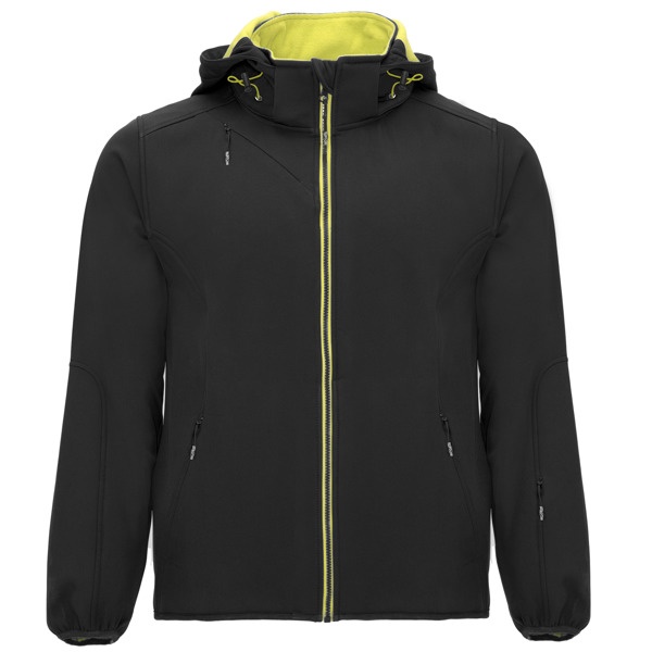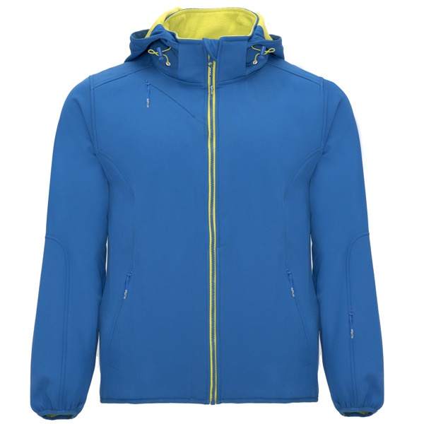 2-warstwowy softshell w sportowym stylu. Kontrastowy zamek błyskawiczny z osłoną podbródka i ściągaczem. Ciepłe wnętrze z kontrastowego mikropolaru. Dwie kieszenie boczne i jedna kieszeń na piersi. Mała kieszonka na lewym rękawie. Elastyczne wykończenie przy mankietach i u dołu. Odpinany kaptur z kontrastową podszewką z mikropolaru.
