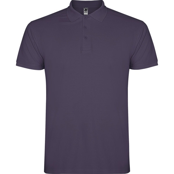 Koszulka polo z krótkim rękawem. Wzmocnione, kryte szwy przy kołnierzyku. Prążkowany kołnierzyk i rękawy. Szwy boczne. Zapięcie na trzy guziczki. Rozcięcia po bokach.