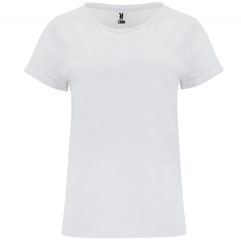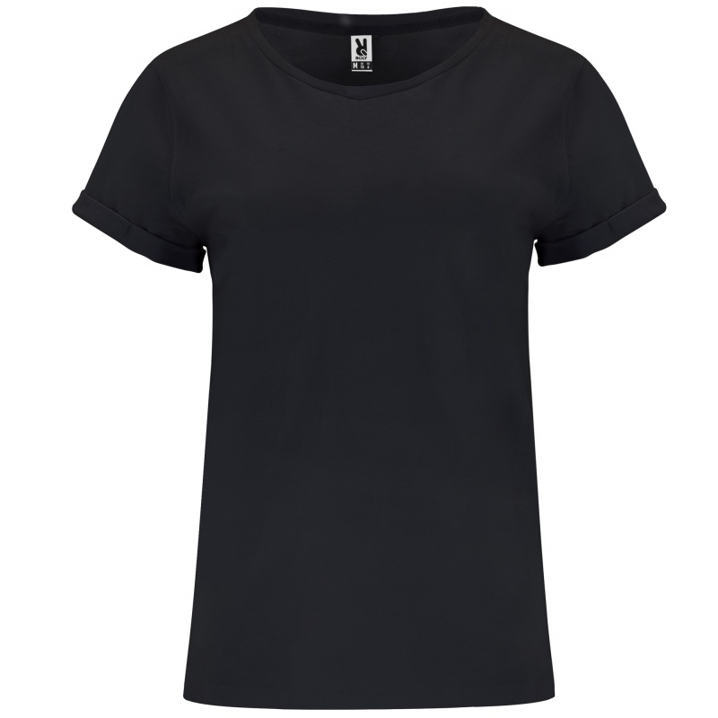 Okrągły dekolt z tej samej tkaniny. Wzmocnione, kryte szwy na karku w tym samym kolorze. Podwijane rękawki wzmocnione w czterech punktach.