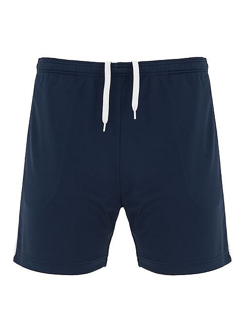 Krótkie szorty multisport. Boczne kieszenie zapinane na zamek. Elastyczny pas z kontrastowym ściągaczem wewnętrznym. Kontrastowy pasek boczny.