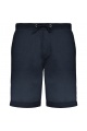 Elastyczny ściągacz w pasie z regulowanym sznurkiem. Boczne kieszenie z imitacją zamka, tylna kieszeń, podwinięte nogawki.