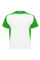 Koszulka techniczna z krótkim, raglanowym rękawem. 1. Okrągły kołnierzyk z krytymi szwami w tym samym tonie. 2. Kontrastujące rękawy i panele boczne.
