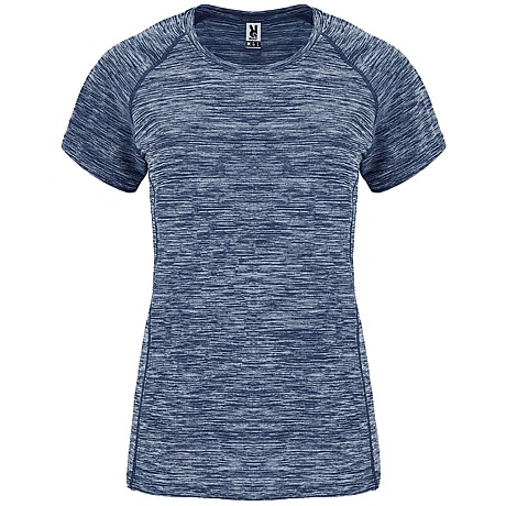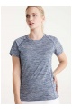 Damska koszulka techniczna z poliestru, krótki rękaw ranglanowy. Okrągły dekolt. Wygodna, łatwo dopasowująca się do ciała.