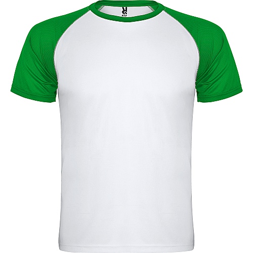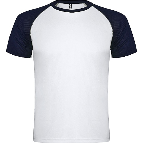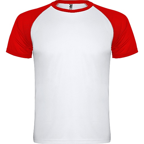 Koszulka sportowa z krótkim raglanowym rękawem. Rękawy w kontrastowym kolorze. Okrągły dekolt w kontrastowym kolorze ze wzmocnionymi krytymi szwami.