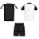 Komplet sportowy unisex składający się z 2 koszulek + 1 spodni. 1. Koszulka z pół raglanowymi rękawami, zdobionymi paskami. 2. Okrągły dekolt. 3. Kolor drugiej koszulki występuje w odwróconych kolorach. 4. Elastyczne spodnie w pasie z wewnętrznym sznurkiem w tym samym kolrze ze szwami zabezpieczającymi. 5. Kontrastujące boczne paski oraz przecięcia w nogawce.