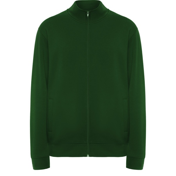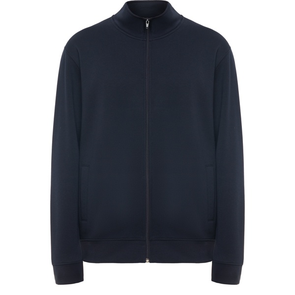 Bluza z wysokim kołnierzem i błyskawicznym zamkiem do połowy w tym samym kolorze. Wewnętrzna strona kołnierza w tym samym kolorze ze wzmacnianą obwódką. Prążkowana dzianina 1x1 przy nadgarstkach i pasie.