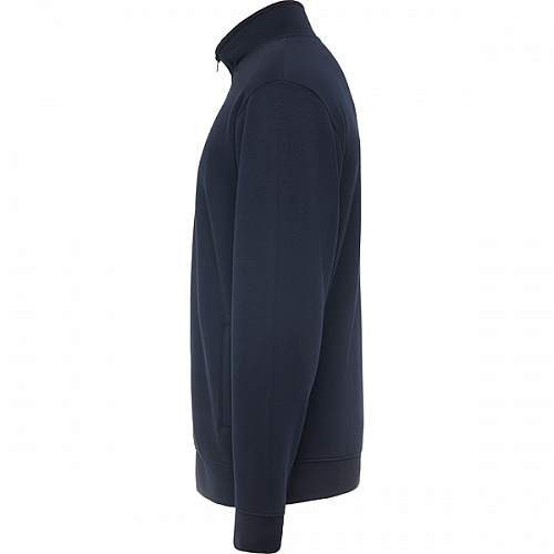 Bluza z wysokim kołnierzem i błyskawicznym zamkiem do połowy w tym samym kolorze. Wewnętrzna strona kołnierza w tym samym kolorze ze wzmacnianą obwódką. Prążkowana dzianina 1x1 przy nadgarstkach i pasie.