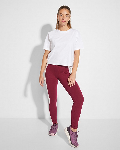 Sportowe legginsy damskie. Z elastycznym ściągaczem w pasie i kontrastowymi panelami bocznymi.