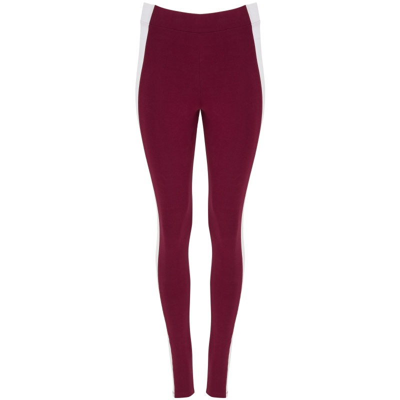 Sportowe legginsy damskie. Z elastycznym ściągaczem w pasie i kontrastowymi panelami bocznymi.