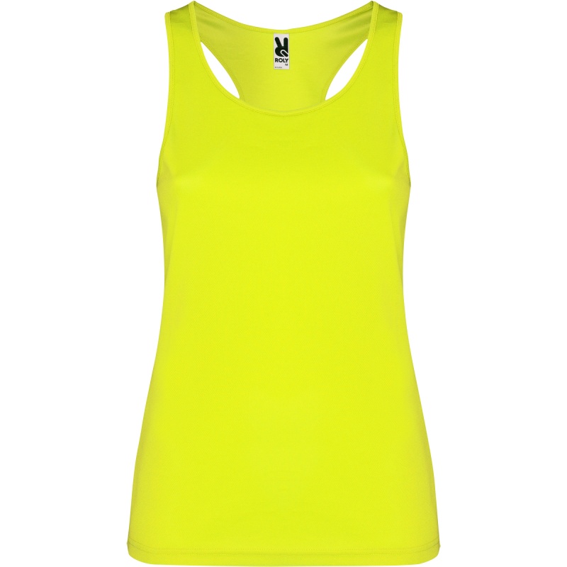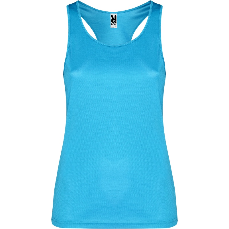 Techniczna koszulka z wycięciami na ramiona i obszytym dekoltem. Tylne i boczne szwy w stylu pływackim.
