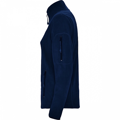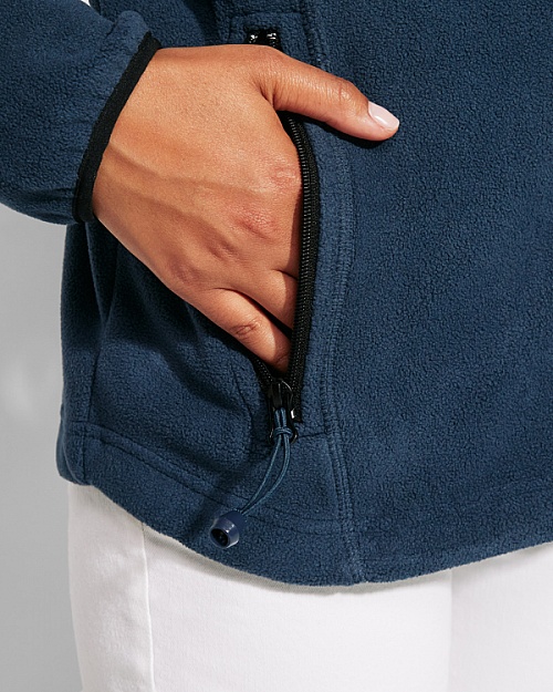 Sportowa kurtka polarowa z zamkiem. Kołnierz ze stójką. Rękawy wykończone kontrastującą lamówką. Zamek błyskawiczny z przodu. Kieszeń z zamkiem na lewym rękawie. Szwy boczne.