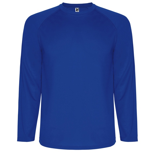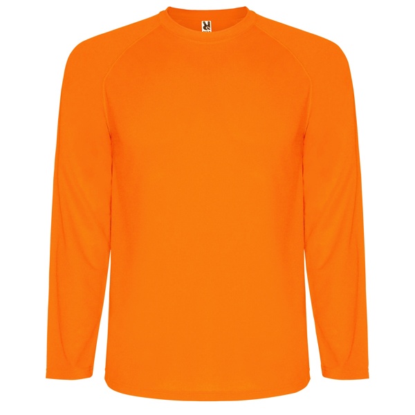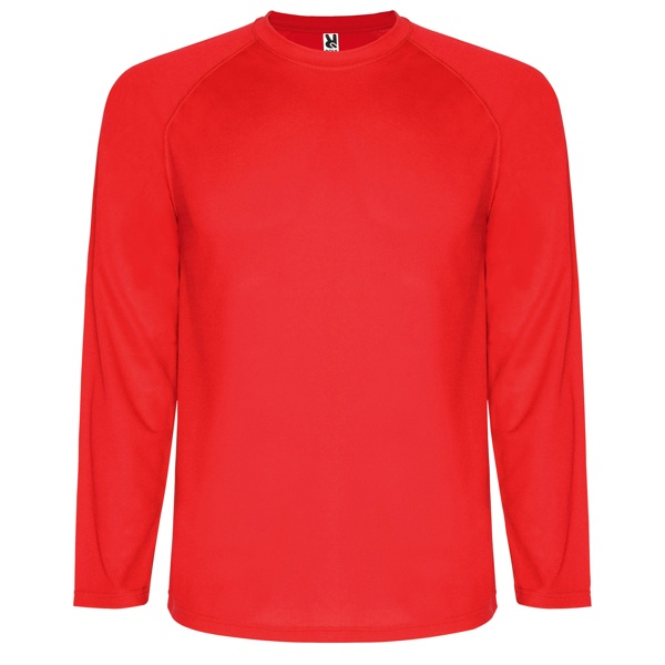 Koszulka techniczna z długim raglanowym rękawem. 1.- Przeszycia w kolorze tkaniny 2.- Kryte szwy przy kołnierzyku 3.- Oddychająca tkanina, łatwa w praniu i szybkoschnąca