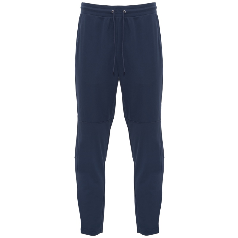 Długie spodnie ze zwężanymi nogawkami. 1. Elastyczny pas regulaowany za pomocą zewnętrznych sznurków. 2. Boczne kieszenie. 3. Boczne szycie nachodzące na przednią cześć nogawki. 4. Dolna część ngawki zapinana na zamek.