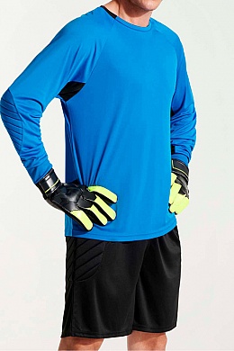Krótkie spodenki bramkarskie unisex. 1. Wyposażone w specjalne gąbki na łokciach. 2. Elastyczny ściągacz w pasie z regulowanym sznurkiem.