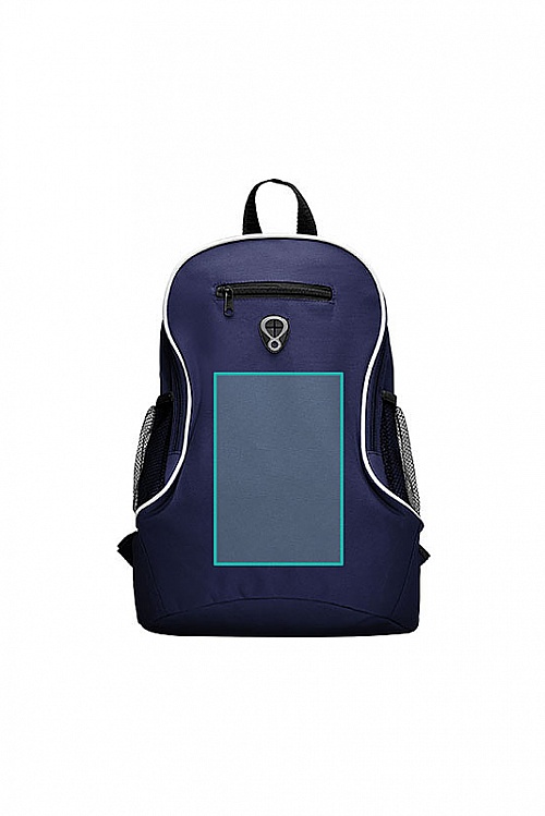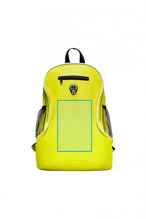 Mały plecak z regulowanymi uchwytami. 1.- Ucho do zawieszenia plecaka. 2.- Przednia kieszeń z zamkiem. 3.- Boczne kieszenie wykonane z siatki.