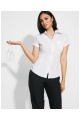 Koszula damska z krótkim rękawem i kieszenią na lewej piersi. Materiał popelinowy. Dopasowany krój z przednimi i tylnymi odcięciami. Przednie zapięcie z ukrytymi guzikami. Łatwa w użytkowaniu.