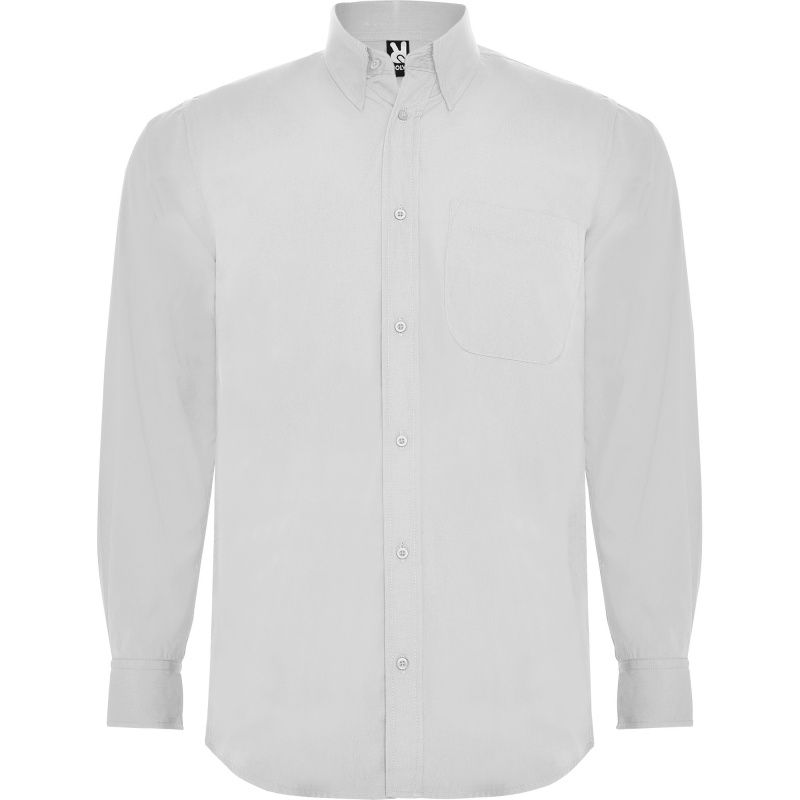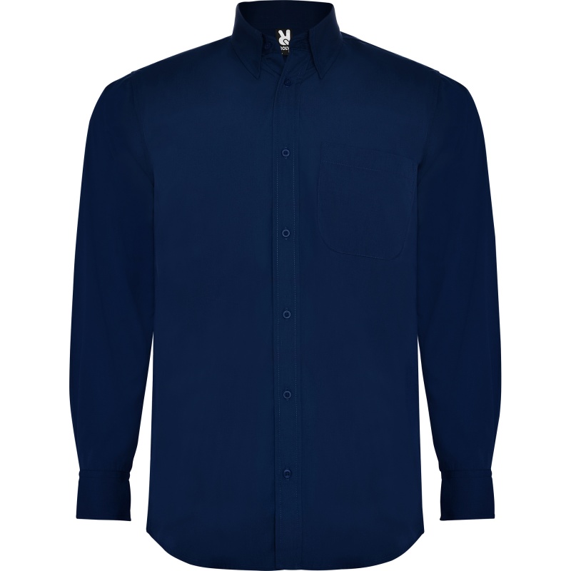 Koszula z długim rękawem, klasycznym kołnierzykiem i kieszonką. Kieszeń na lewej piersi. Zapięcie na siedem guzików w tym samym kolorze, co tkanina. Łatwa pielęgnacja.