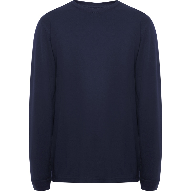 Koszulka z długimi rękawami z materiału trudnopalnego Okrągłe wycięcie pod szyją, z obwódką, kołnierz i zakończenia rękawów z dzianiny prążkowanej 1x1. Szwy boczne.