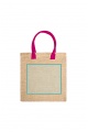 Worek z naturalnej juty z wzmocnionymi kolorowymi bawełnianymi uchwytami.