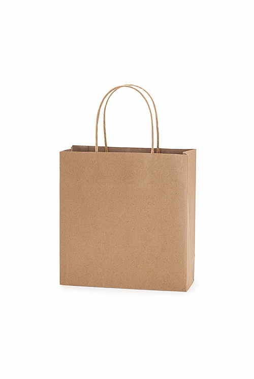Torba papierowa w naturalnym wykończeniu 110 g/m². Krótkie uchwyty wzmocnione ondulowanym wzorem.
