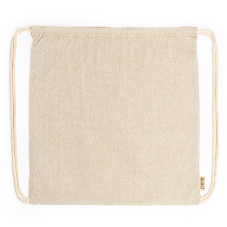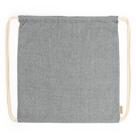 Torba ze sznurkiem wykonana z bawełny pochodzącej z recyklingu o gramaturze 120 g/m2 w kolorze melanżu i sznurków w naturalnym odcieniu.
