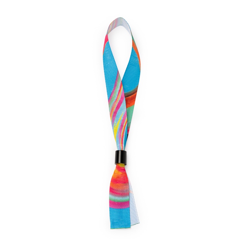Regulowana poliestrowa opaska na nadgarstek z zapięciem dociskowym. Idealna do sublimacji.