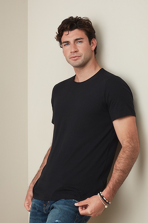 T-shirt dla mężczyzn wykonany z miękkiej czesanej bawełny, przyjemny w dotyku i z modnie zawiniętym kołnierzem. Delikatna struktura nadaje tym T-shirtom wspaniały wygląd i wysoką elastyczność.