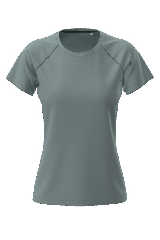 Komfortowo skrojony sportowy T-shirt dla kobiet z raglanowymi szwami w kolorze kontrastującym, wykonany z szybko schnącego i funkcjonalnego materiału, czyli oddychającej siateczki.